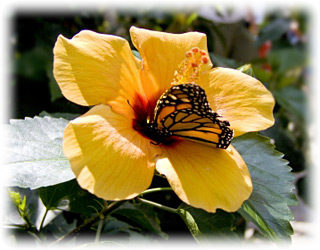 Bild "Gelber Hibiskus mit einem Schmetterling" © Tina B./